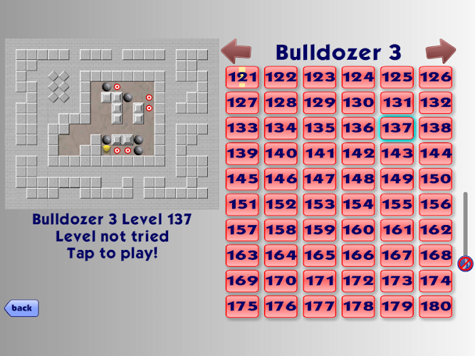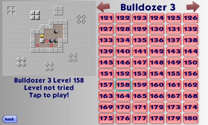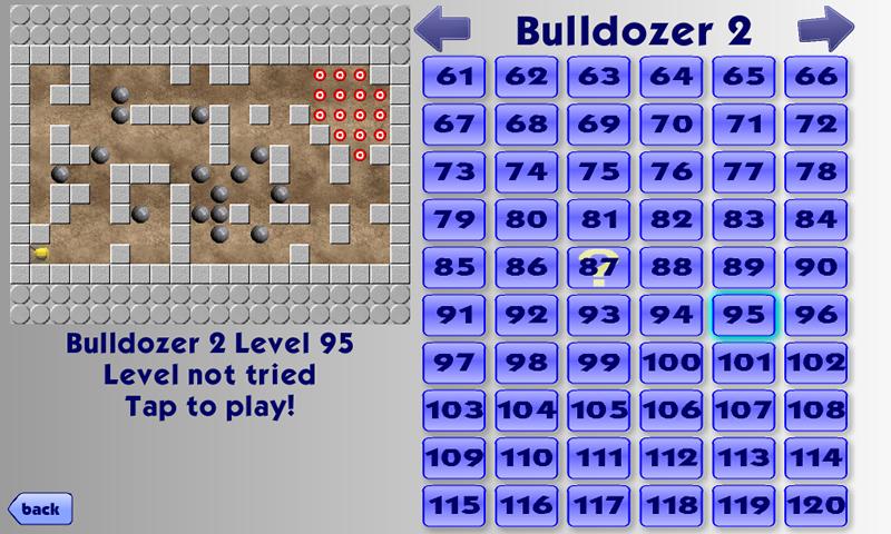 The classic "Push the boulders" game is now available for Android phones and tablets! This version includes every level from the original Bulldozer 1, Bulldozer 2, and Bulldozer 3. That's 180 levels of addictive rock-pushing obsession. Have fun!What's New