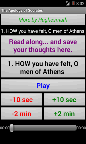 Android App Analysis and Review: The Apology of Socrates Listen, Developed by HughesMath. Listed in Music & audio Category. Current Version Is 1.0, Updated On 19/03/2014 . According to users reviews on Google Play: The Apology of Socrates Listen. Achieved Over 1,000 Installs. The Apology of Socrates Listen Currently Has 6 Reviews, Average Rating 4.3 Stars