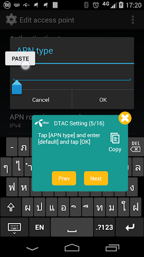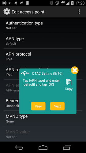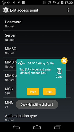 • Follow the steps by press copy button to copy your mobile operator data and paste it on setting page.