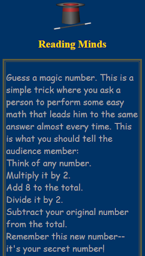 Do you like magic?Do you wanna learn magic tricks? if yes this application is for you.So jump in and learn how to astound your friends!This applications contains 26 amazing magic tricks, you can easily practice at your home and thrill your friends.
