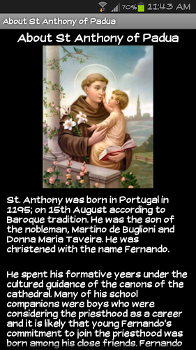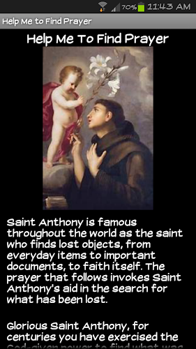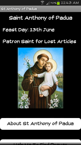 App contains information about St Anthony of Padua, Patron of Lost Articles.