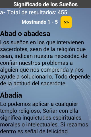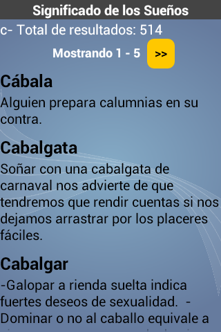 Conoce el significado de los sueños que tienes, con una base de datos de más de 10000 situaciones.Este diccionario de sueños permite realizar búsquedas por palabras clave o directas, te permitirá intepretar los sueños que hayas tenido y encontrar de manera exacta la situación planteada en tu sueño.