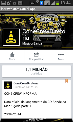Android App Analysis and Review: Cone Crew Diretoria Social App, Developed by incrown. Listed in Music & audio Category. Current Version Is 1.0, Updated On 05/11/2016 . According to users reviews on Google Play: Cone Crew Diretoria Social App. Achieved Over 10 thousand Installs. Cone Crew Diretoria Social App Currently Has 262 Reviews, Average Rating 4.8 Stars