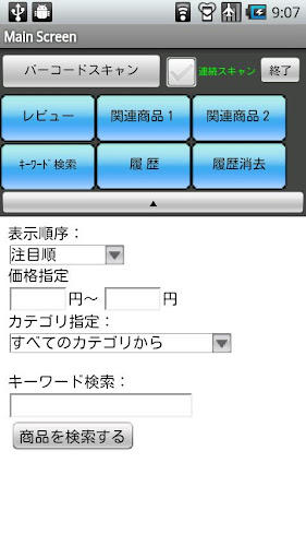 ● The main built-in function bar code, reading of the QR code (available in continuous scan mode), the appropriate bar code, search-related products ranking keyword search of the evaluation review search and related products product search and product of the QR code (