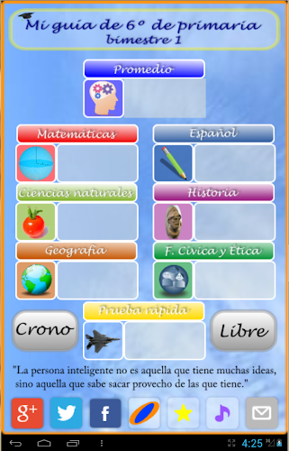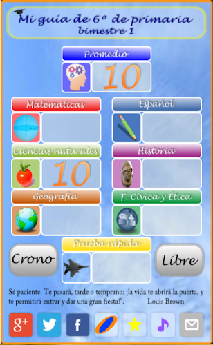 Con esta guía el niño podrá estudiar y simular los exámenes todas la veces que quiera y en el momento que lo desee; tomará retos por materia de 10 preguntas de temas diversos, al terminarlos, la aplicación automáticamente le dirá qué calificación ha obtenido y cuál es su promedio general, los cuales serán muy parecidos a los que obtendrá en los exámenes en su escuela.