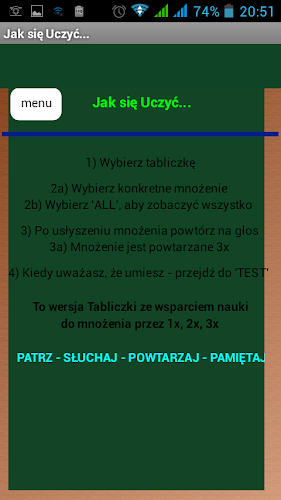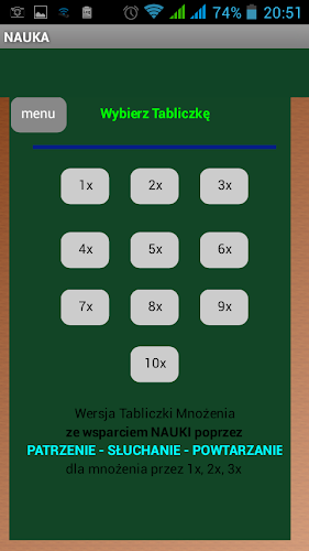 the free version nameplate reklamy.aktywna learning multiplication tables by: - patrzenie- słuchanie- powtarzanie- memorization tests sprawdzające.aby quickly learn the signs: - select action - looking to hear the result of actions - on repeat and listen głos- dokończ-powtórzdzięki and hear this application, parents can rest easy knowing how fast you learn multiplication tables:) success!
