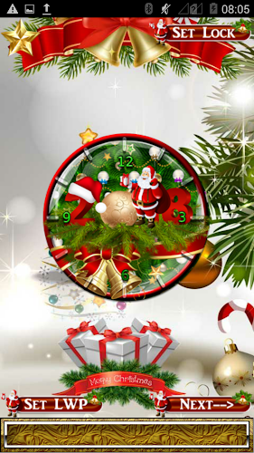 Santa Claus Theme Analog Clock Lock screen - Santa Claus Christmas Theme Live Wallpapers for your home screen.Twenty five Different types of Themes & 15 designer Clocks ( Santa Claus ,Christmas tree,Balls, Stars & new year 2018 clock styles ) for Live wallpaper and lock screen and also option to enable disable lock screen.Santa Claus Clock Lock screen: