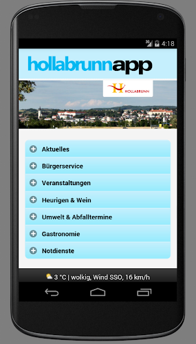بلدية Hollabrunn - معلومات والأخبار من Hollabrunn مع الأخبار والتواريخ والأحداث والمعلومات خدمة المواطننحن نقدم حاليًا الإصدار 1.0. هذا هو أحدث إصدار محسّن. إنه مناسب للعديد من الأجهزة المختلفة. تنزيل مجاني مباشرة Apk من متجر Google Play أو الإصدارات الأخرى التي نستضيفها. علاوة على ذلك ، يمكنك التنزيل بدون تسجيل ولا يتطلب تسجيل الدخول.