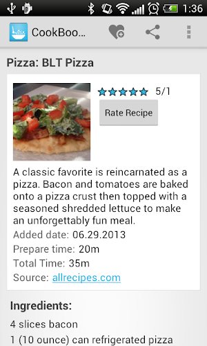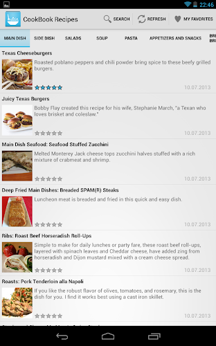 - рецепта за търсене от ключове, съставки, заглавия, или описание. list.