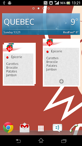 Après votre téléchargement, ne pas oublier d'installer le Widget, très utile. Il vous permet de consulter rapidement vos notes sans même avoir à ouvrir l'application.
