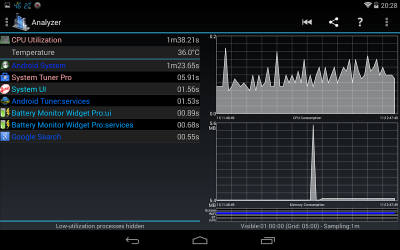 ◊ All Android applications or all processes, CPU, memory