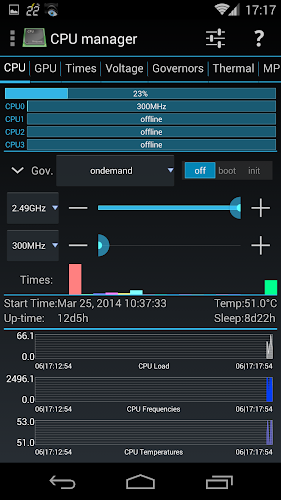 ◊ CPU governor, frequency, voltage, GPU controls, thermal and MPDecision controls