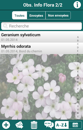 the app info flora captures wild plant observations terrain.avec easily on the book info ground flora, you can: * capture field observations, even without telephone network * photos *describe the locality and habitat * specify the population size, origin, etc. * use the reference list containing 3300 species of wild plants * Swiss forward your comments and find them on your online notebook: www.obs.