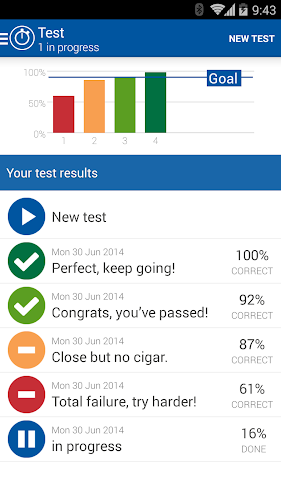 In this App are lots of statistics and tools that help you during your studies. Your progress will be tracked and you’ll see when you are ready for the test.