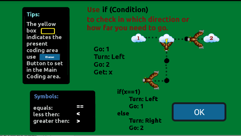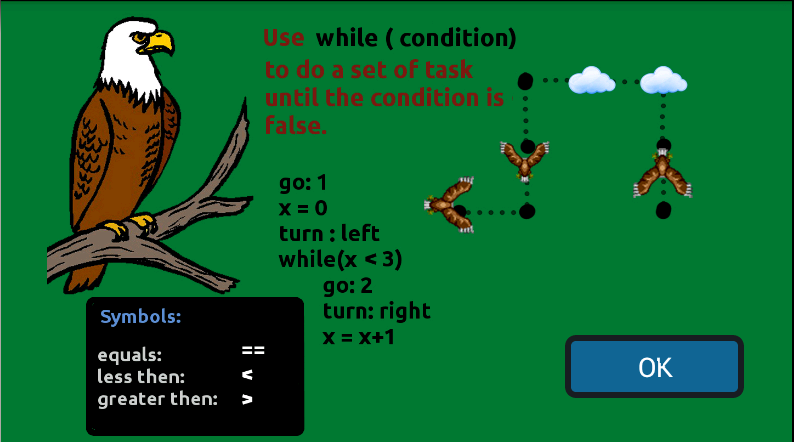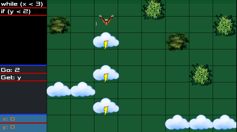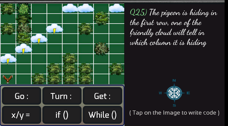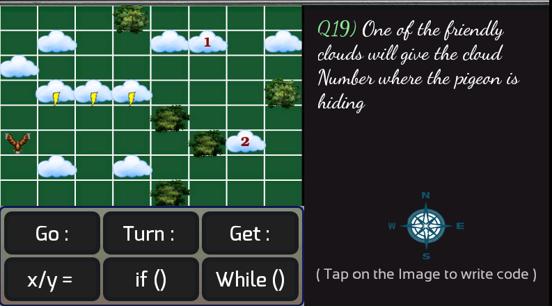 Play and learn basic programming concepts the easy way. Code Hayato is not only meant to introduce programming to kids, it also has challenging puzzles for everyone. Learn programming in a fun way by helping Hayato to chase a pigeon.Hayato is trying to catch a pigeon, but the pigeon keeps on evading him. Help Hayato in his chase by giving him directions and telling him the best way to catch the pigeon. Beware, the pigeon may be hiding among the clouds and also evade the trees on your path.
