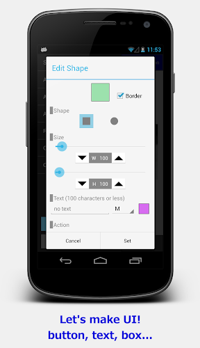 This application designs UI(user interface) of the application .Moreover, it is also possible to put an easy action (display message and screen transition) on made UI.