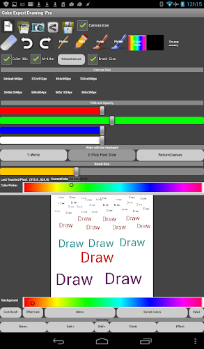 Color Expert Drawing is an application made for all purposes. Among its functions and sizes are: Clear line, clear all, effect lines,button (redo and undo), color picker (background), brush(large and medium), pencil (medium and small), color mixer with opacity, brush size, draw with mirror image on another screen and save image. Among the camera functions and other functions , we have: Take picture , take a picture and make the doodle ( drawing ) of the photo , pick image in the gallery, small geometry functions and write with the keyboard with Font Size ( 15, 25, 35, 45, 55, 65, 75, 85, 95, 155, 225 and 300).We are currently offering version 1.7.8. This is our latest, most optimized version. It is suitable for many different devices. Free download directly apk from the Google Play Store or other versions we're hosting. Moreover, you can download without registration and no login required.