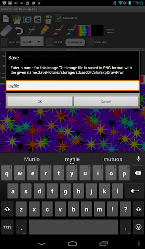 (Tamanho da fonte: 15, 25, 35, 45, 55, 65, 75, 85, 95, 155, 225 e 300).Outras correções tornando o aplicativo mais prático(checkbox para escrever com tamanho da fonte, checkbox para tamanho do canvas e botão "undo e redo" fazendo retornar e avançar conforme o desenho no canvas ) e por último alterei o modo de salvar o arquivo com a opção de nome dado que antes era padronizado com um só nome.