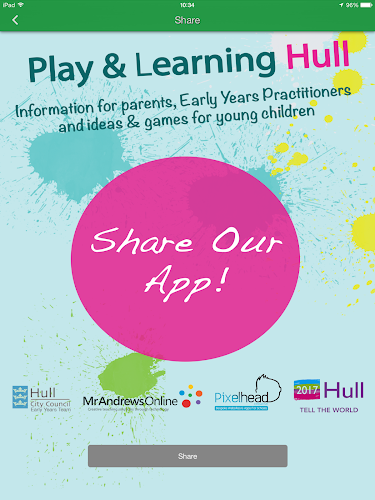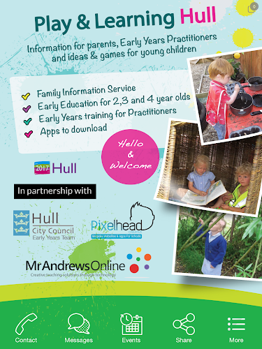The Play & Learning App has been produced by the Hull City Council Early Years Team to streamline information sharing within the community.We work closely with early years settings and parents/carers to provide guidance, support and information. This app will share details of news and events, activity ideas and provide a centrally co-ordinated point of reference and contact for parents/carers and those working with pre-school children in Hull.