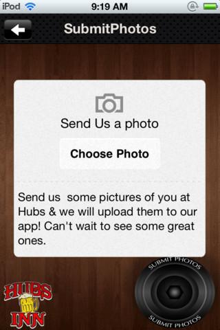 -Submit Photos. You can snap pictures of you at Hubs Inn & we will upload them to our app.