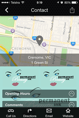 Permanent Beauty Ink is located in Cremorne, Victoria. At Permanent Beauty Ink we specialise in permanent make-up treatments and tattoo removal. Our clinic is staffed by friendly, highly trained professionals, who are dedicated to enhancing the beauty in you.Download our free App to read more about us and our services. You can also book appointments or make enquiries, claim loyalty rewards, send us a photo for treatment recommendations, read and leave reviews, join our mailing list for our latest news, track and attend our latest events of interest, engage with our social media like Facebook.