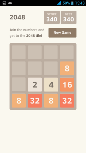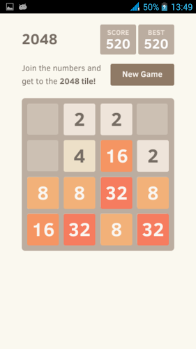 Fun and addictive mobile version of 2048 game and most perfect 2048 number puzzle game for android! The same number of two tiles touch, when you combine them into one, swipe to move the tiles.When 2048 tile is created, the player wins!
