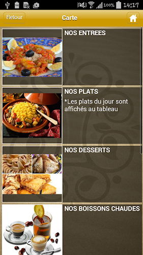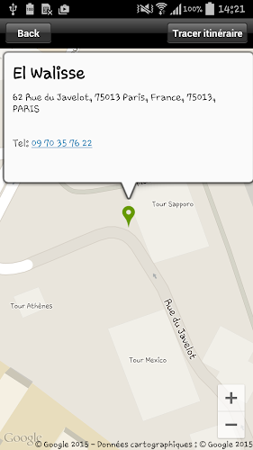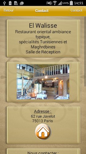 L'application "El Walisse" vous offre la possibilité de consulter toutes les infos utiles du restaurant (Tarifs, carte, avis…) mais aussi de recevoir leurs dernières News ou Flyers sous forme de notifications Push.Caractéristiques de l'application :