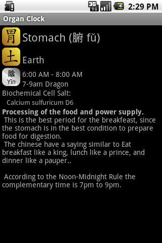 The Organ Clock App shows which organs are at their peak Qi at which time.