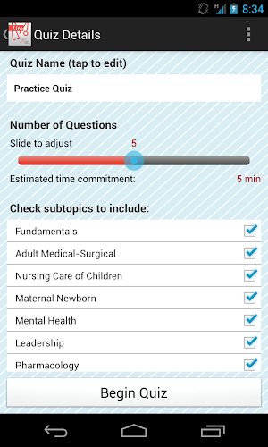 • Customize the number of questions (1-10); the app will estimate how long the quiz will take