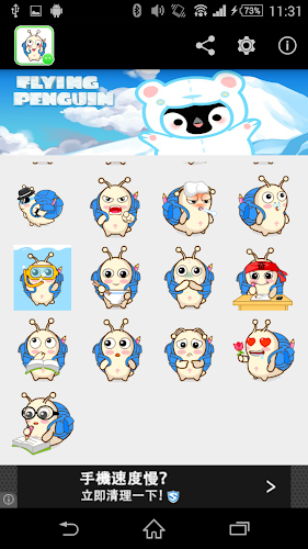 Lovely Snail, with a blue shield, but why color in blue?Simply tap on the emoji to share your expressions to everyone at everywhere.