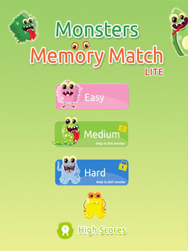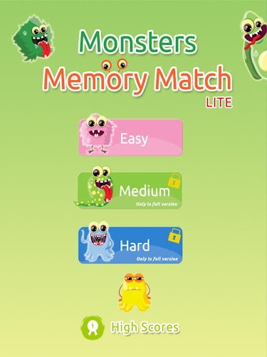 You can purchase the full version of this memory match game with two more levels (medium and hard), more monsters and no ads.