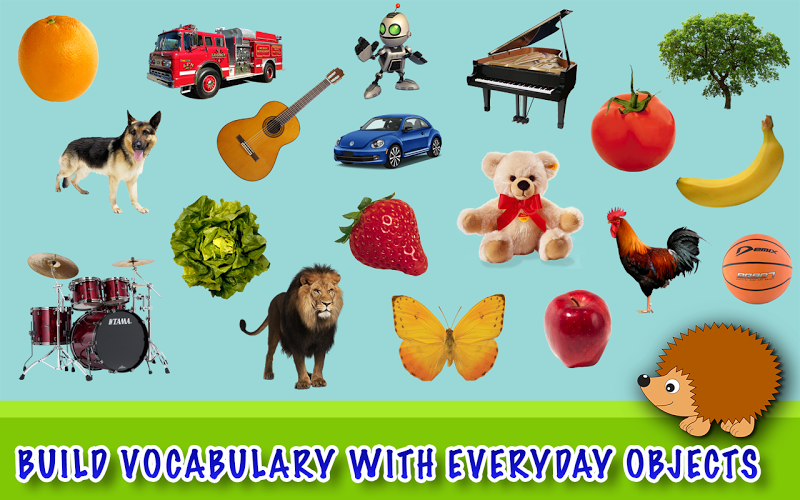 22 different every day objects and popular animals are used in the counting game. This variety helps young kids increase their vocabulary.