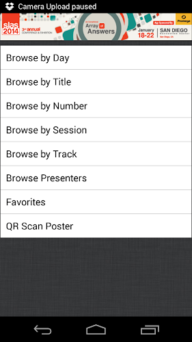 *** FOR ATTENDEES ONLY ***The SLAS2014 mobile application allows you to browse through the presentations, posters and exhibitors.