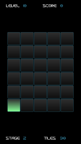 Stage 1: increases the length of the sequence (max. 10) and number of tiles (max. 30) with each level.