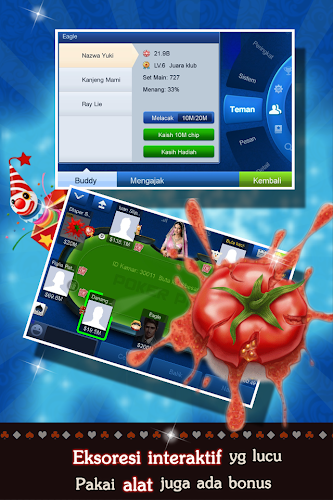 Items: You can throw eggs/tomatoes to other players you hate, or send flowers/kisses to others you like
