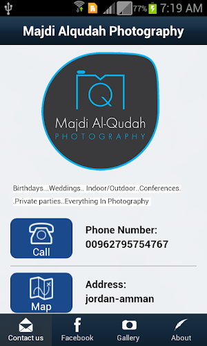 Android App Analysis and Review: Majdi Al-Qudah Photography, Developed by FunMaker. Listed in Photography Category. Current Version Is 1.3.6.89, Updated On 15/05/2013 . According to users reviews on Google Play: Majdi Al-Qudah Photography. Achieved Over 100 Installs. Majdi Al-Qudah Photography Currently Has 7 Reviews, Average Rating 5.0 Stars