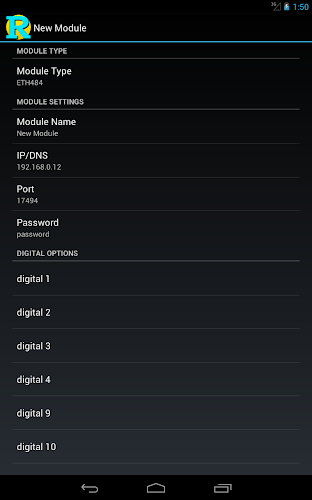 This app allows you to control any number of Devantech Ethernet or WIFI modules via the internet (available from www.robot-electronics.co.uk).Each module and all of its I/O's can be given custom names for ease of identification.