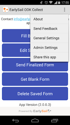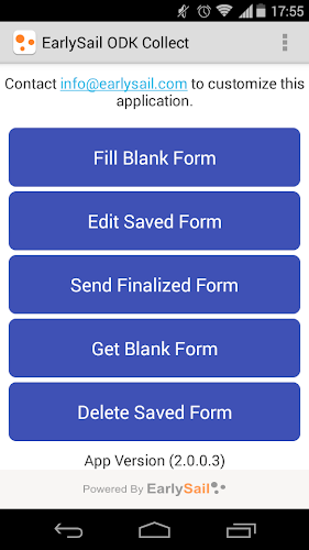 Android App Analysis and Review: EarlySail ODK Collect, Developed by EarlySail Software Private Limited. Listed in Productivity Category. Current Version Is 2.0.0.11, Updated On 23/12/2014 . According to users reviews on Google Play: EarlySail ODK Collect. Achieved Over 1,000 Installs. EarlySail ODK Collect Currently Has 1 Reviews, Average Rating 4.0 Stars