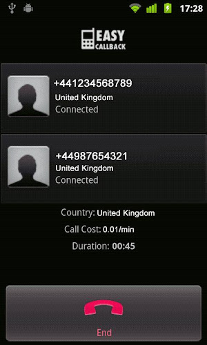 Easycallback is your mobile dialer for cheap international calls from your Android smartphone with 3G or Wifi. Download our free calling app, create an account, add some calling credit and start saving immediately on your mobile costs. No steady 3G/WiFi connection is needed, most weak network connections will suffice to use our 3G/WiFi mobile dialer!Easycallback is also the best option to save on your mobile phone costs when exceeding your operator's monthly plan, or when roaming, our cheap calling rates are much cheaper than those of your operator with the best call quality available.