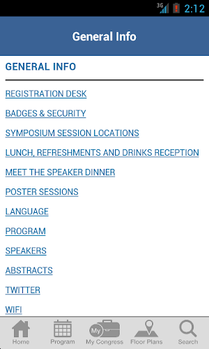 Using Elseviers new app, you can browse the scientific programme by days, topic or speaker, create your own personal programme, locate rooms and exhibitor stands on the floor plans, and more. Before first use, you'll need to download the latest conference data and then afterwards, you can use the app offline.