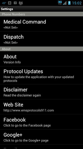 You are able to enter 2 phone numbers into the application. These numbers are meant to be for your medical command and dispatch numbers. You are able to call these numbers from inside this application.