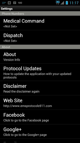 You are able to enter 2 phone numbers into the application. These numbers are meant to be for your medical command and dispatch numbers. You are able to call these numbers from inside this application.