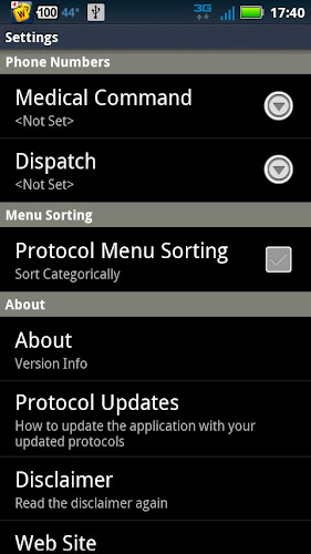 You are able to enter 2 phone numbers into the application. These numbers are meant to be for your medical command and dispatch numbers. You are able to call these numbers from inside this application.