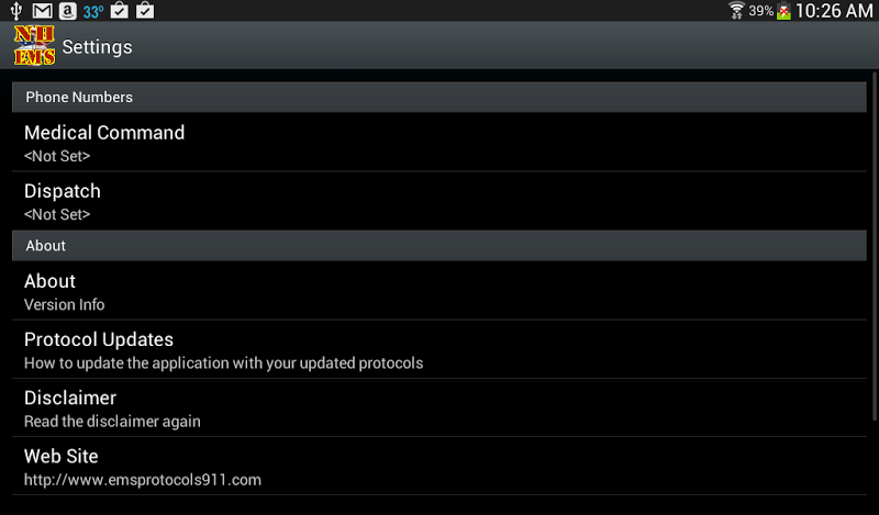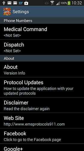 You are able to enter 2 phone numbers into the application. These numbers are meant to be for your medical command and dispatch numbers. You are able to call these numbers from inside this application.