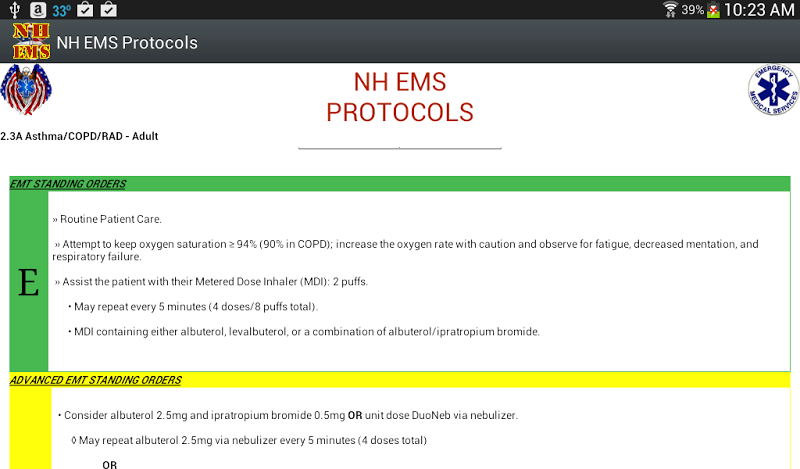 Android App Analysis and Review: NH EMS Protocols, Developed by EMS Protocols. Listed in Medical Category. Current Version Is 3.1.1, Updated On 10/05/2016 . According to users reviews on Google Play: NH EMS Protocols. Achieved Over 500 Installs. NH EMS Protocols Currently Has 33 Reviews, Average Rating 4.3 Stars