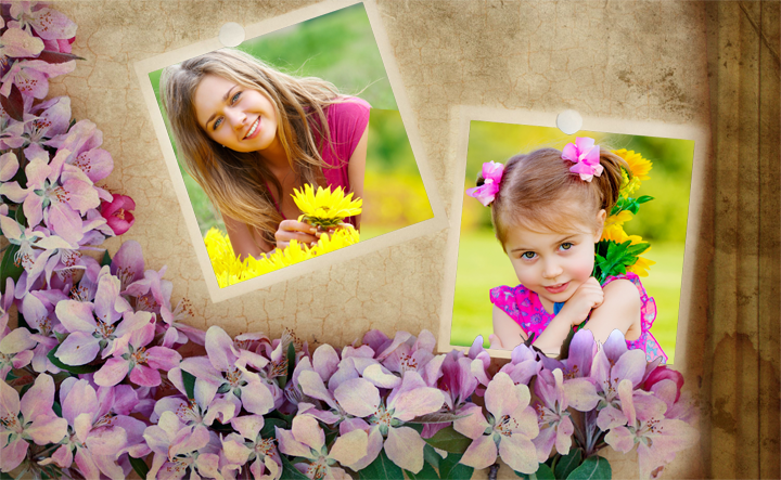 We know, that floral patterns are in trend now, so we created a collection of beautiful photo frames with floral designs for your lovely photos! You won't be needing a lot of image editors or photo effect apps anymore – Flower Collage photo editor is all you need to give your cute pics an absolutely fresh and new look! Flower Collage photo editor is your new photographer and photocollage studio! Create your pretty new look with nice flowers, then send it by Skype, Facebook, Twitter, WhatsApp, SMS or E-mail.