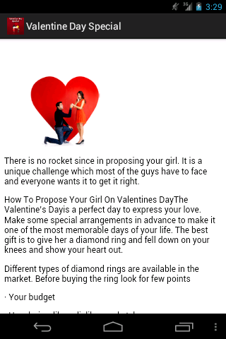 Android App Analysis and Review: Valentine Day Special by Extended Web AppTech, Developed by Extended Web AppTech. Listed in Entertainment Category. Current Version Is 1.0, Updated On 23/01/2014 . According to users reviews on Google Play: Valentine Day Special by Extended Web AppTech. Achieved Over 100 Installs. Valentine Day Special by Extended Web AppTech Currently Has 1 Reviews, Average Rating 5.0 Stars
