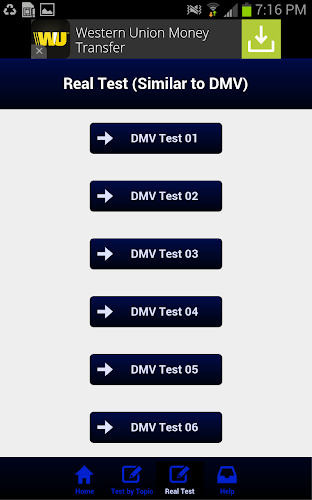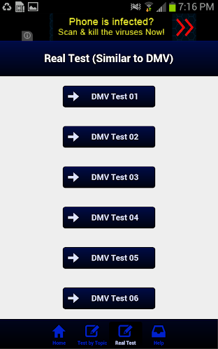 1) Tap on the "Real Test" button at the bottom of the app to write test similar to real test.