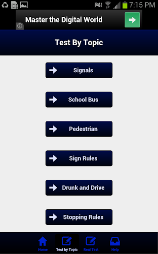 1) To write the test in different topics tap on the "Test by Topic" button at the bottom to app to write test in different category