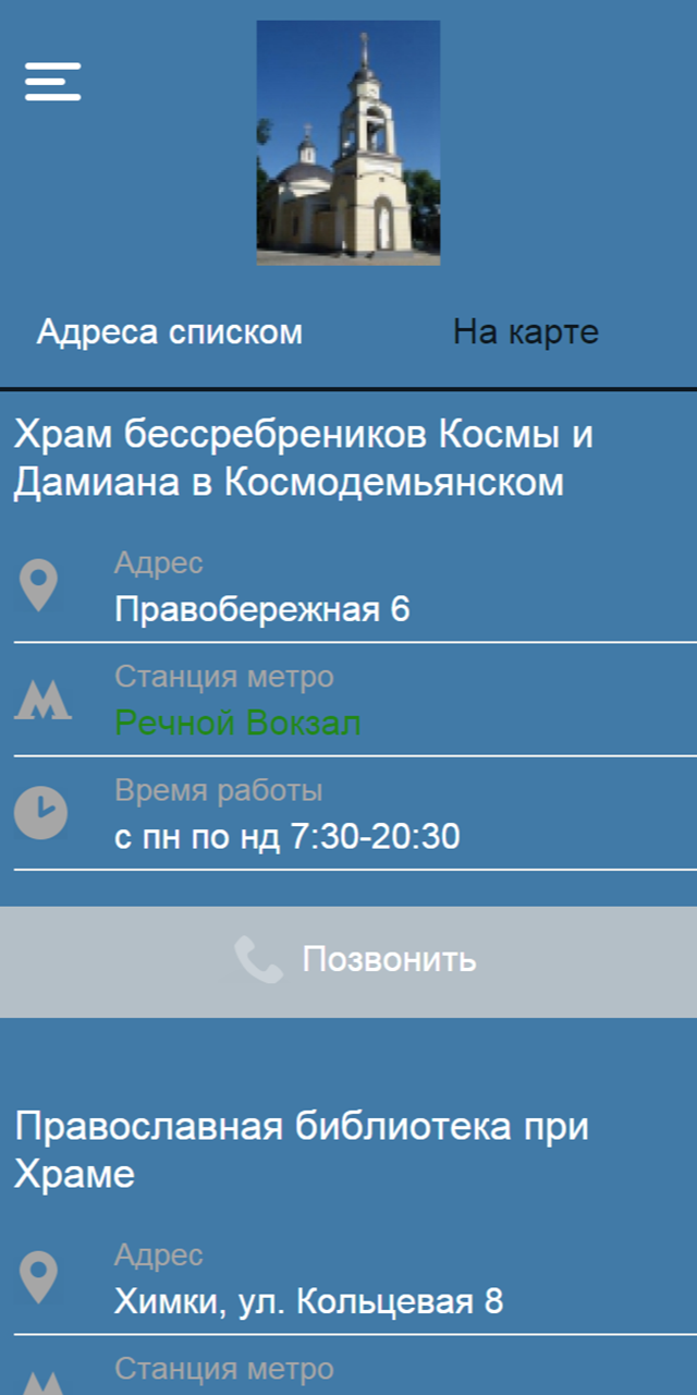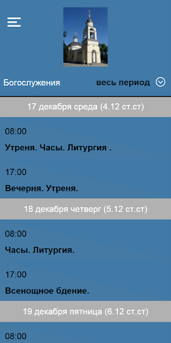 In the application you will find, schedule of services, 3d panorama, Clergy, Our events, information about the Temple.